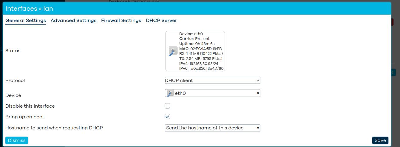 uci-defaults(один раз) - Устройство получает IP по DHCP (MAC стабилен — DHCP-сервер выдаст тот же IP)